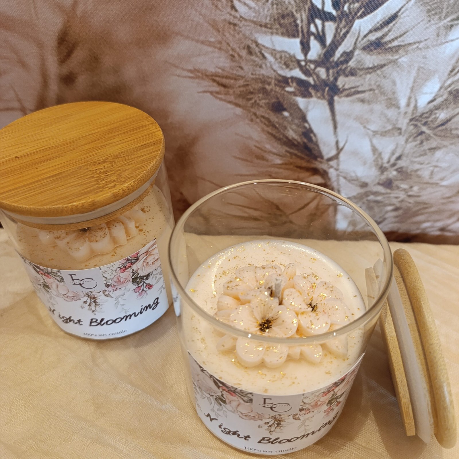 Night Blooming- Αρωματικό κερί με μυσταγωγικό άρωμα νυχτερινών ανθών. Οι ντελικάτες λουλουδένιες νότες συνδυάζονται με μια διακριτική γλυκύτητα, δημιουργώντας ατμόσφαιρα χαλάρωσης και κομψότητας. Ιδανικό για βραδιές που θέλεις να γεμίσεις τον χώρο με ζεστή, αρωματική γοητεία.